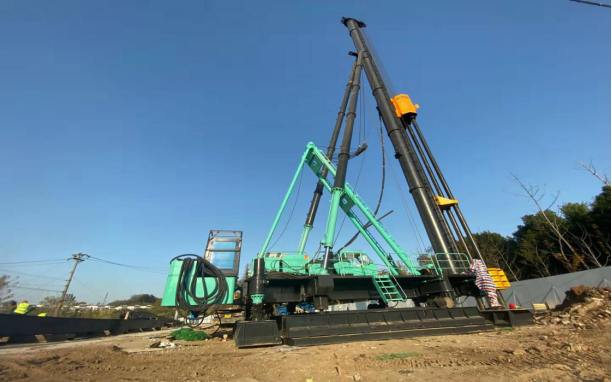 江北河道排口整治工程--施工現(xiàn)場三軸攪拌機(jī)